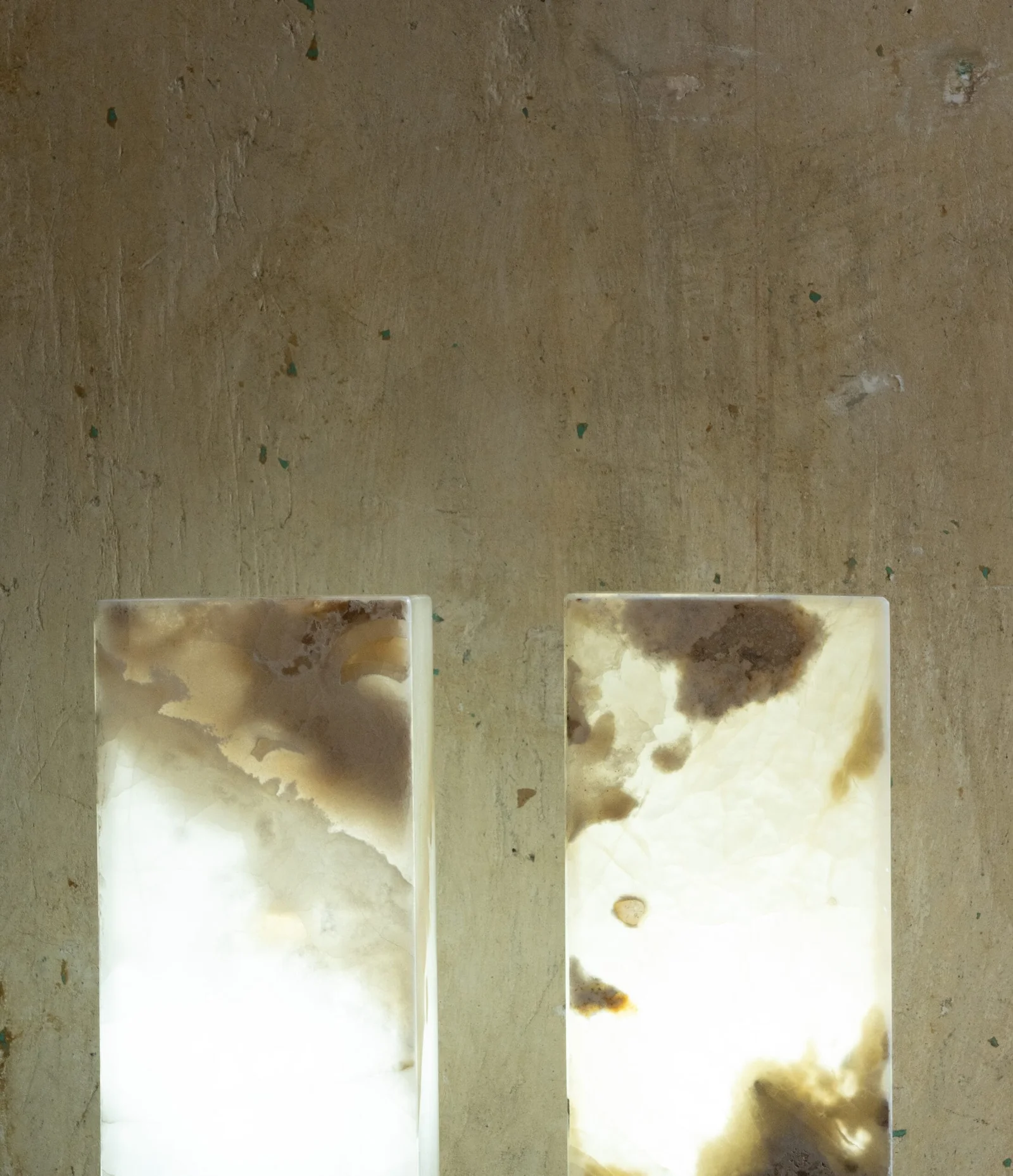 Welcome to the world of Rocas, our latest lamp collection that embodies the essence of sophistication and elegance. Each lamp is a unique piece crafted from exquisite white onyx, capturing the natural beauty of the stone, and creating an ambiance of refinement in your home. The name “Rocas,” Spanish for “rocks,” symbolizes the timeless strength and beauty of nature. Inspired by the geometric shape and the unique characteristics of the stone, our collection captures the fascinating dynamics of a moving rock. Discover with Rocas a unique fusion of modern style and timeless beauty for your home.