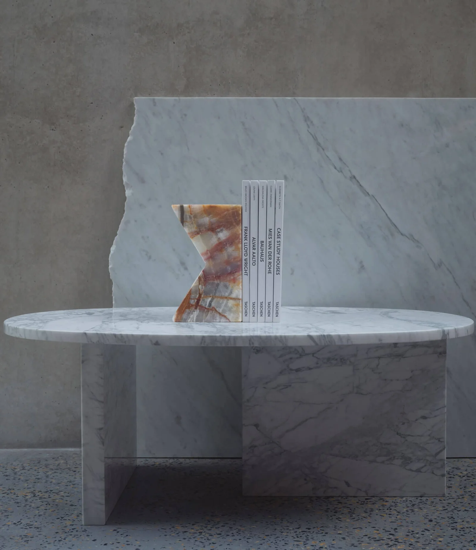 Our Onyx Verde Bookstand is a practical interior piece with sculptural design, carefully handcrafted from 100% natural marble. Its vibrant green tones and natural veining make each piece truly one of a kind. No two bookstands are alike.