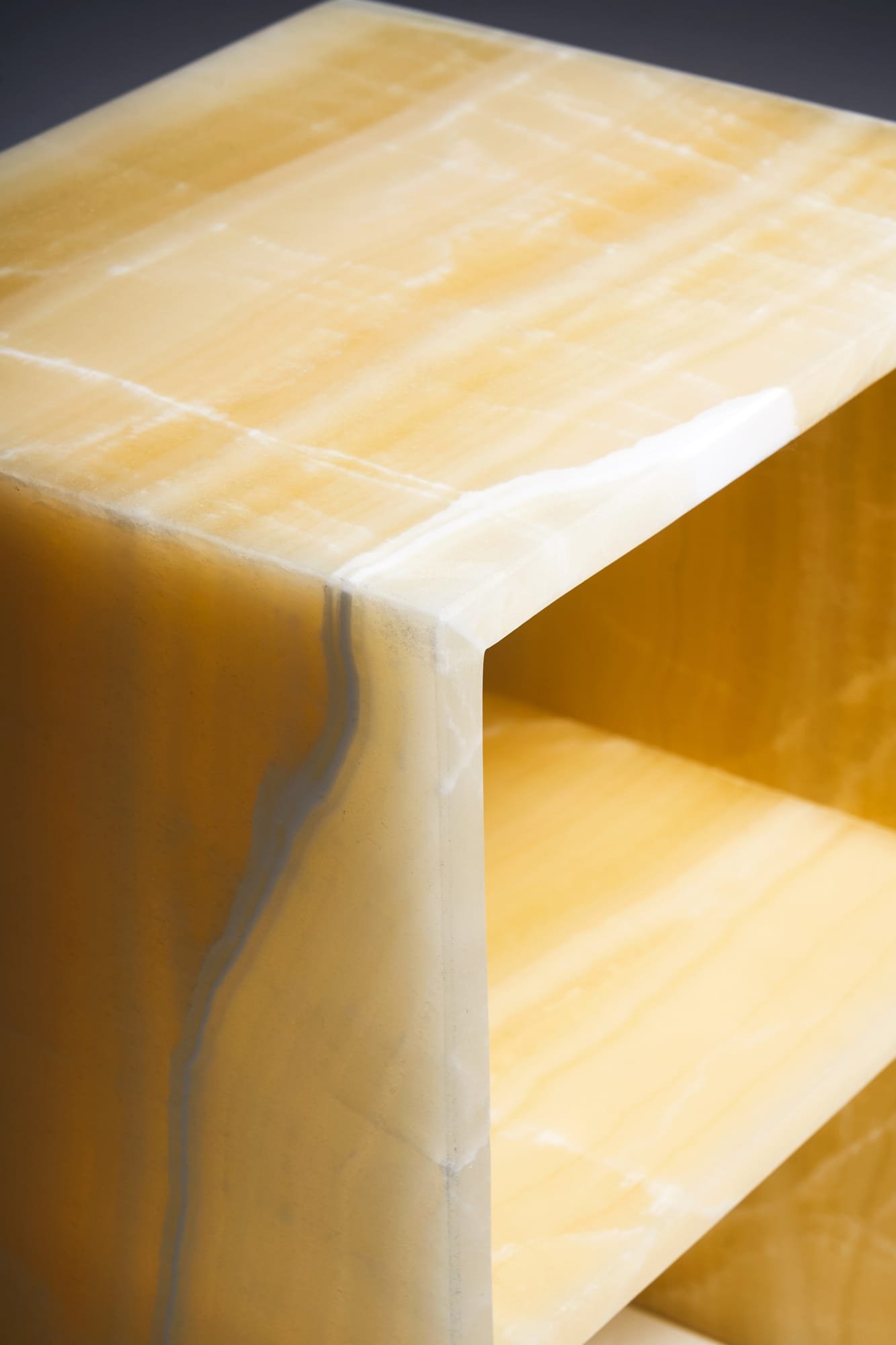 The Sideliner is a refined statement piece. With its clean yet captivating form, it brings a calm and artistic presence to any interior. Its functional proportions make it ideal as a bedside table or side table. This version is crafted from Onyx Blanco – a milky-white natural stone from Mexico known for its gentle translucency and delicate veining. Each piece is unique, handcrafted from 100% onyx with a slab thickness of 2 to 2.5 cm. The Sideliner combines function, subtle elegance and the natural character of a material that radiates calm and quiet strength.
