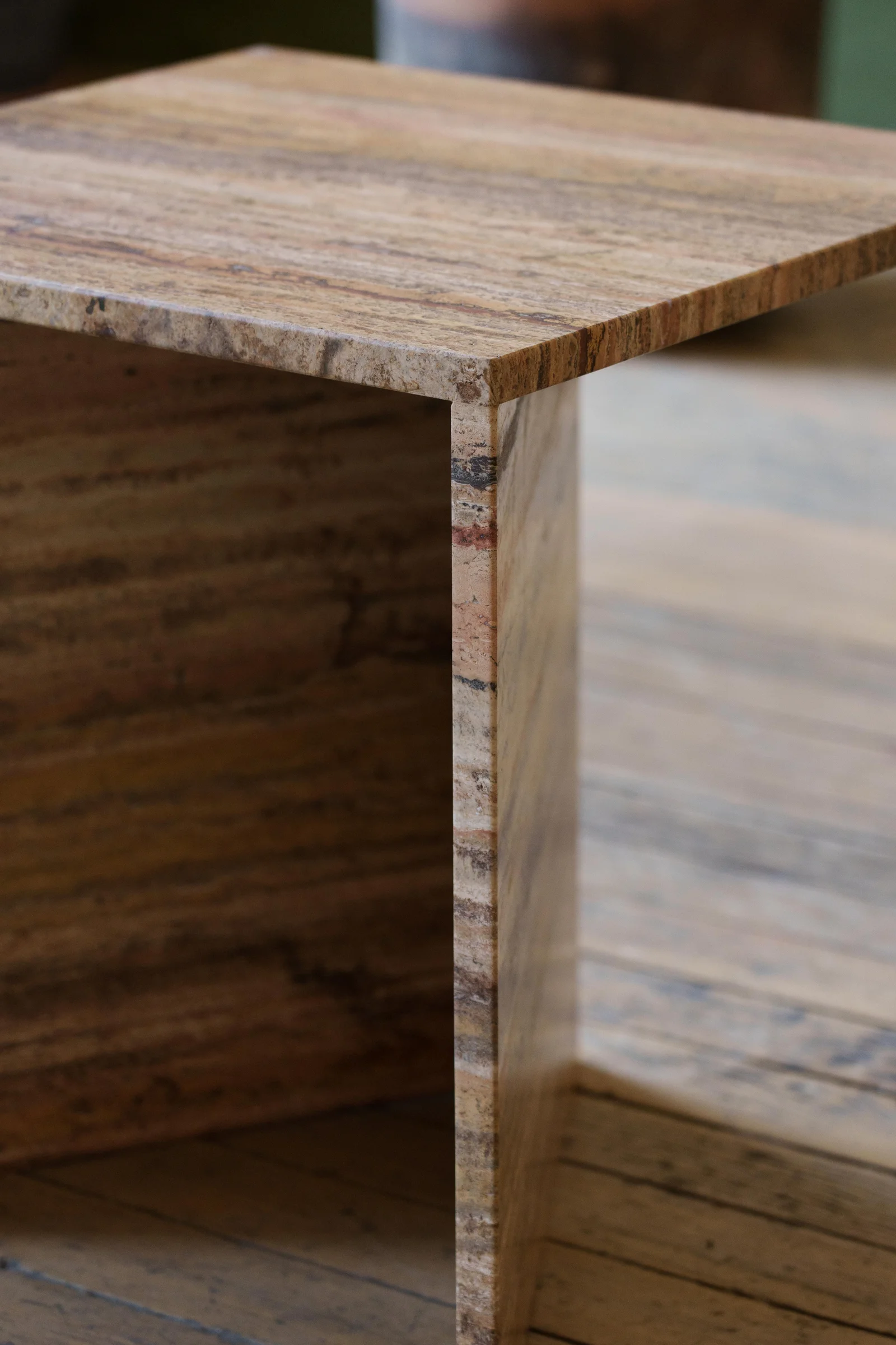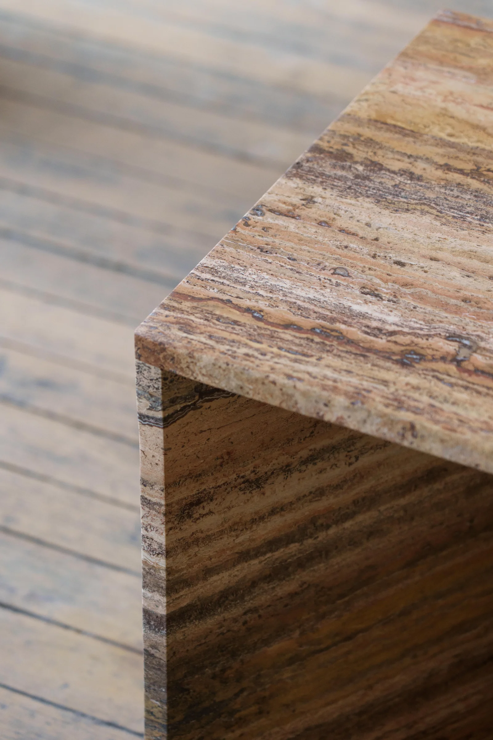 The Crosstable captivates with its extraordinary design, offering a new perspective from every angle. Its three equally sized slabs create a harmonious interplay of geometry and aesthetics. Crafted from 100% natural stone with a slab thickness of 2 to 2.5 cm, the Crosstable serves beautifully as a coffee table or side table. Its thoughtful design adds character and individuality to any space, making it a true eye-catcher.